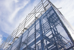 家の周囲に、作業をするための足場を組みます。協力業者に任せる同業他社がほとんどですが、当社では自社施工です。